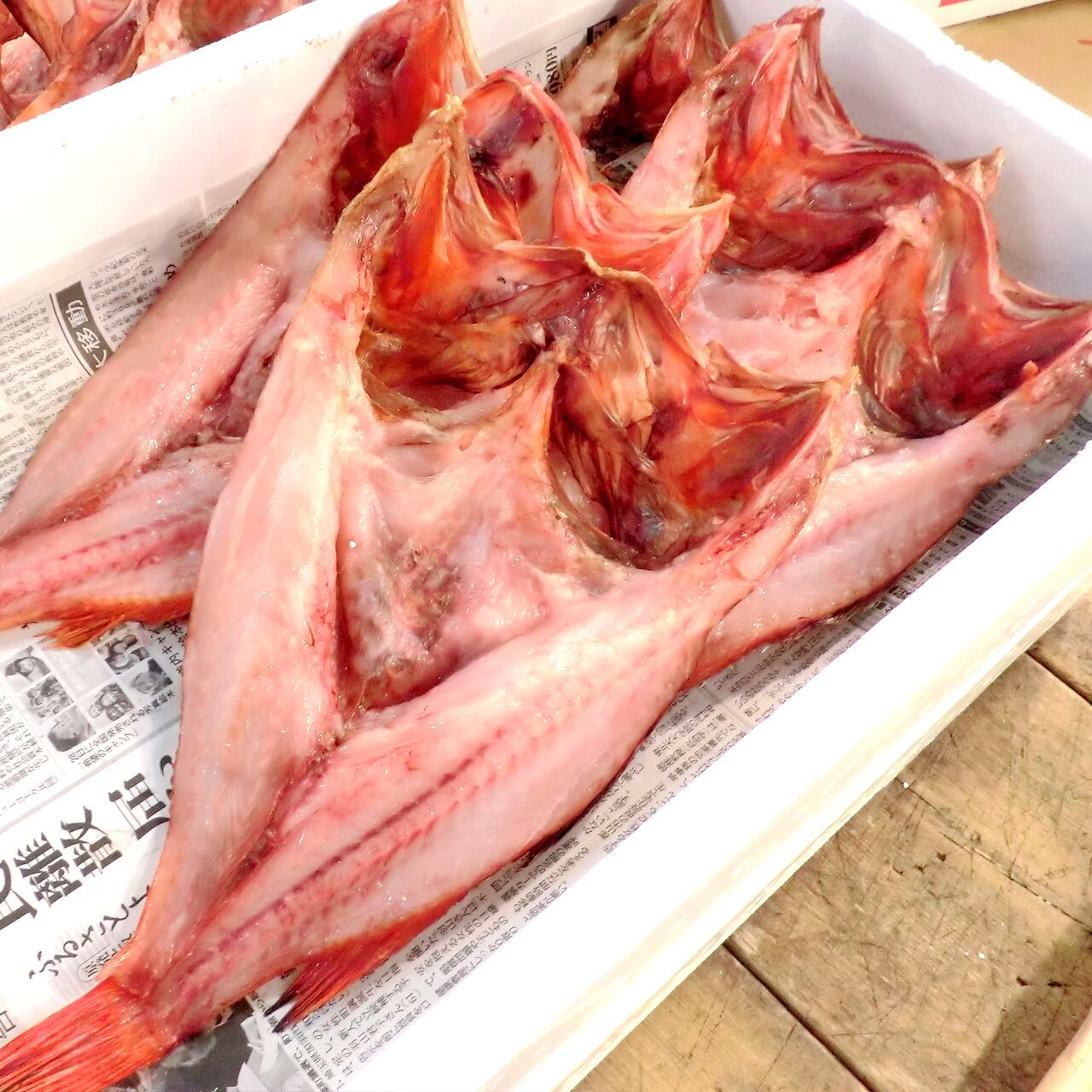 なかなかお目にかかれないこのサイズ!なんと干物きんきにもかかわらず一枚当たり350g前後もある特大サイズです。一枚で十分楽しめるサイズです。